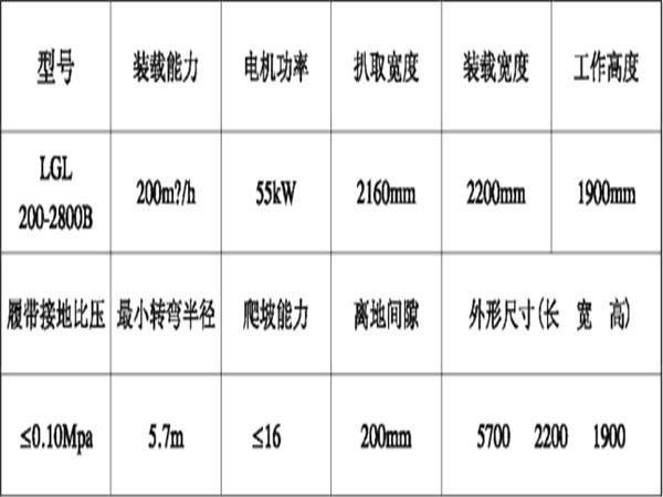 LGL 200-2800B系列滾耙裝載機技術(shù)參數(shù):